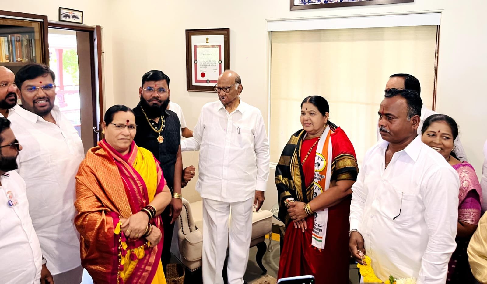 बारामती येथे गुरुवारी राष्ट्रवादी काँग्रेस शरदचंद्र पवार पक्षाचे राष्ट्रीय अध्यक्ष शरद पवार, खासदार सुप्रिया सुळे यांच्या उपस्थितीमध्ये भाजपच्या भोसरीतील माजी नगरसेविका भिमाबाई फुगे यांनी पक्षप्रवेश केला . यावेळी युवक कार्याध्यक्ष रविकांत वरपे, माजी नगरसेवक विनायक रणसुभे, विशाल वाकडकर, विशाल काळभोर, हभप राजाराम महाराज फुगे, राणोजी कंद, दामोदर फुगे, गणपत गव्हाणे रोहिदास माने आदी उपस्थित होते. भीमाबाई फुगे यांच्या सोबत सम्राट फुगे, प्रसाद कोलते, प्रशांत लांडगे सुदेश लोखंडे, गणेश कंद आदींनी पक्ष प्रवेश केला.
