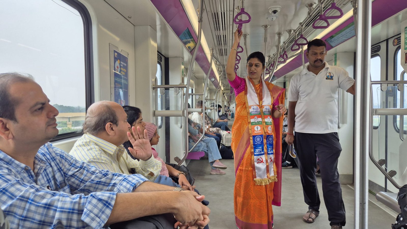 पिंपरी | राष्ट्रवादी काँग्रेस शरद पवार पक्षाच्या अधिकृत उमेदवार डॉ. सुलक्षणा शिलवंत यांनी पिंपरी येथील मेट्रो स्टेशनला भेट देऊन प्रवाशांसोबत प्रवास करून नागरिकांच्या समस्यांचा आढावा घेतला.उत्साही समर्थकांच्या टीमसह, गर्दीतून मार्ग काढत, हस्तांदोलन करत आणि प्रवाशांशी बातचीत करत डॉ.सुलक्षणा यांनी मतदारसंघाविषयीची त्यांची दृष्टी आणि निवडून आल्यास काय बदल घडवून आणण्याची अपेक्षा आहे याबद्दल उत्कटतेने सांगितले. त्यांनी उत्तम पायाभूत सुविधा, सुधारित सार्वजनिक वाहतूक आणि वाढीव सुरक्षा उपाय यांसारख्या महत्त्वाच्या मुद्द्यांवर प्रकाश टाकला.